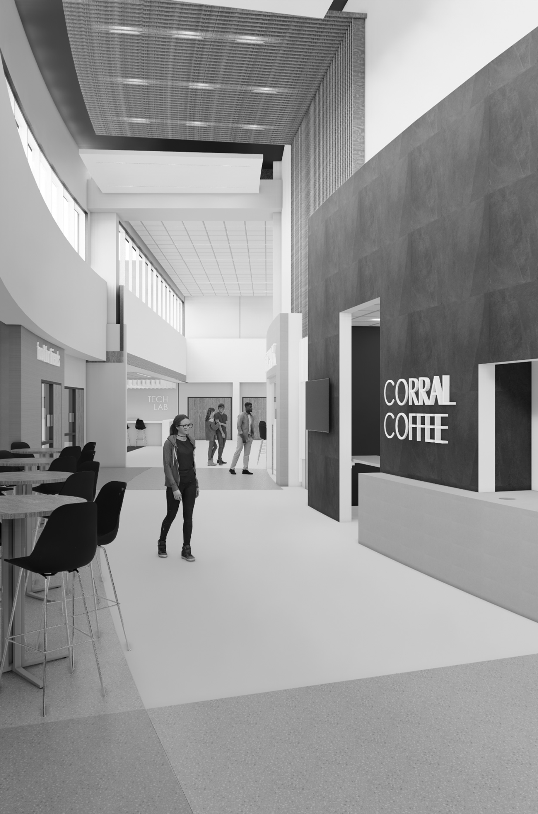 (Photo: Cafeteria and Learning Commons interior elevations)